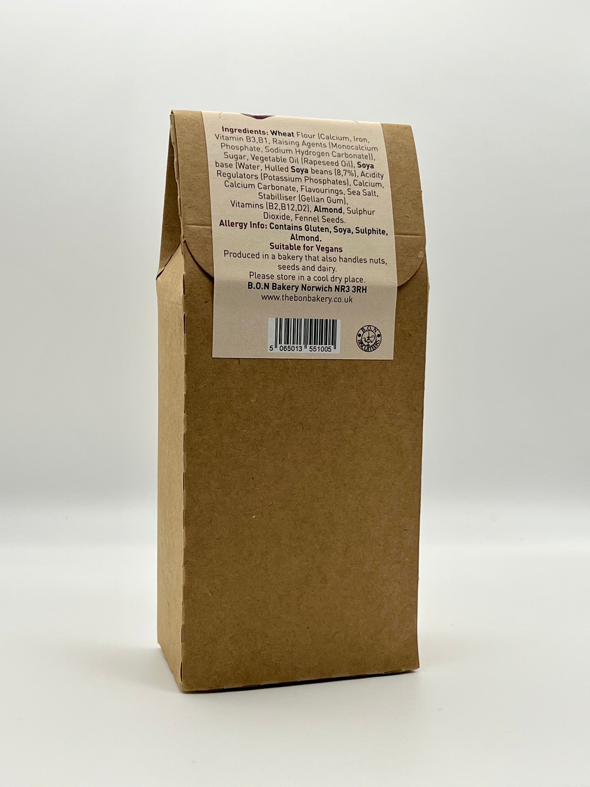 Produced by: B.O.N Bakery. Norwich, Norfolk, NR7 0PA