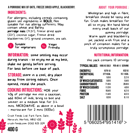 Made by: Crush Foods Ltd, Park Farm, Salle, NR10 4SG