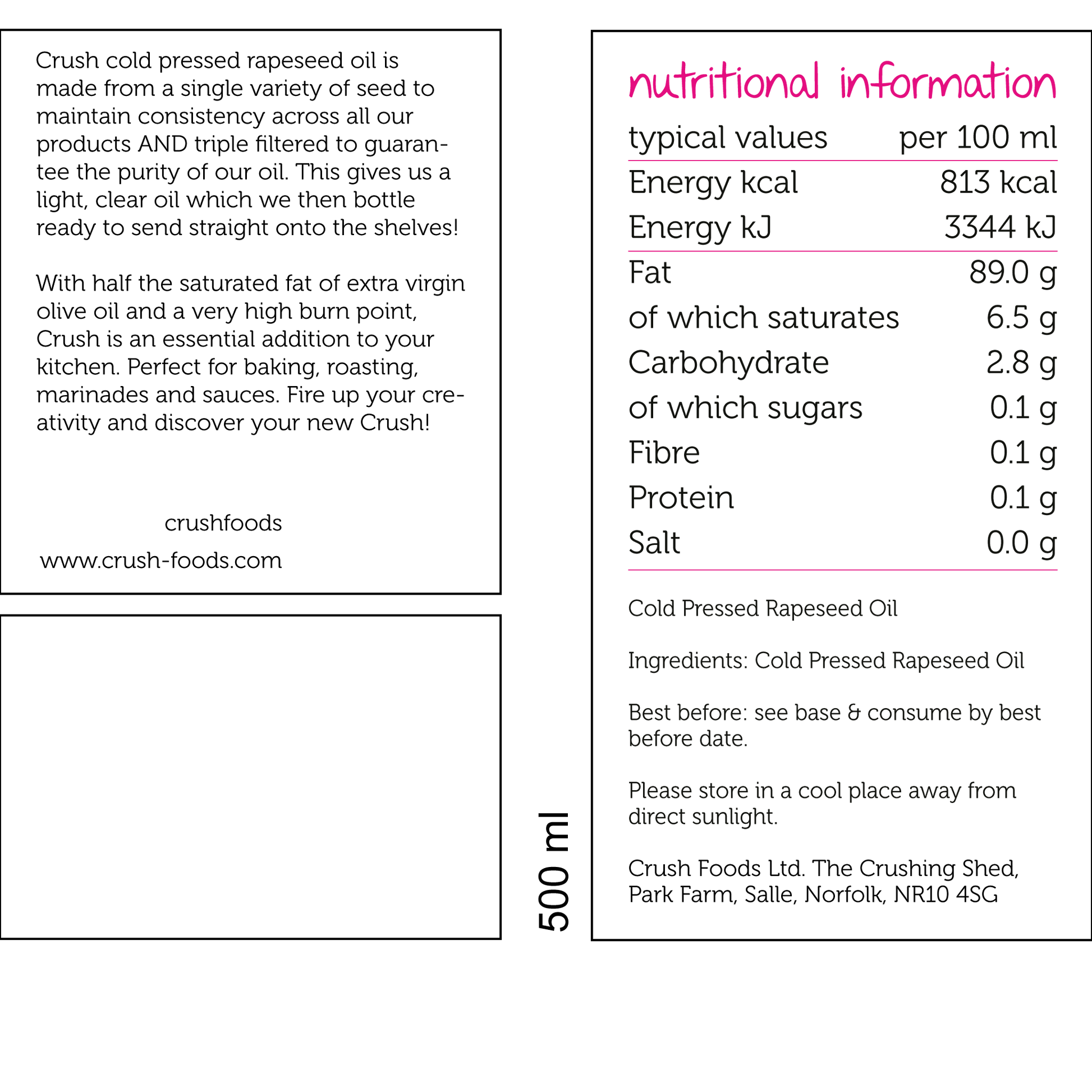 Crush Foods Norfolk Cold-Pressed Rapeseed Oil