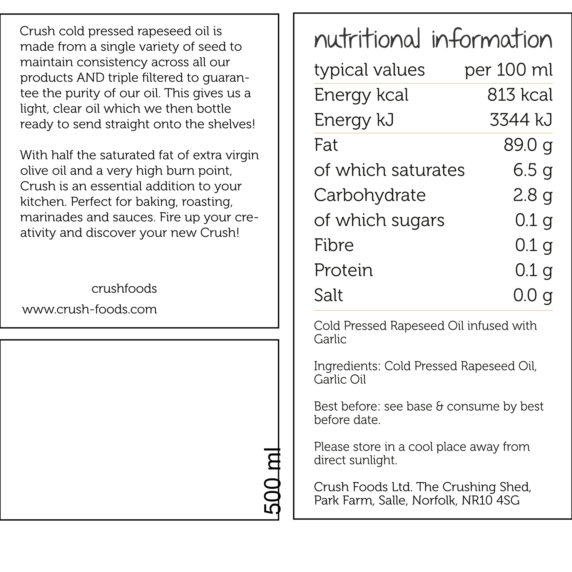 Crush Cold Pressed Rapeseed Oil, Garlic Oil