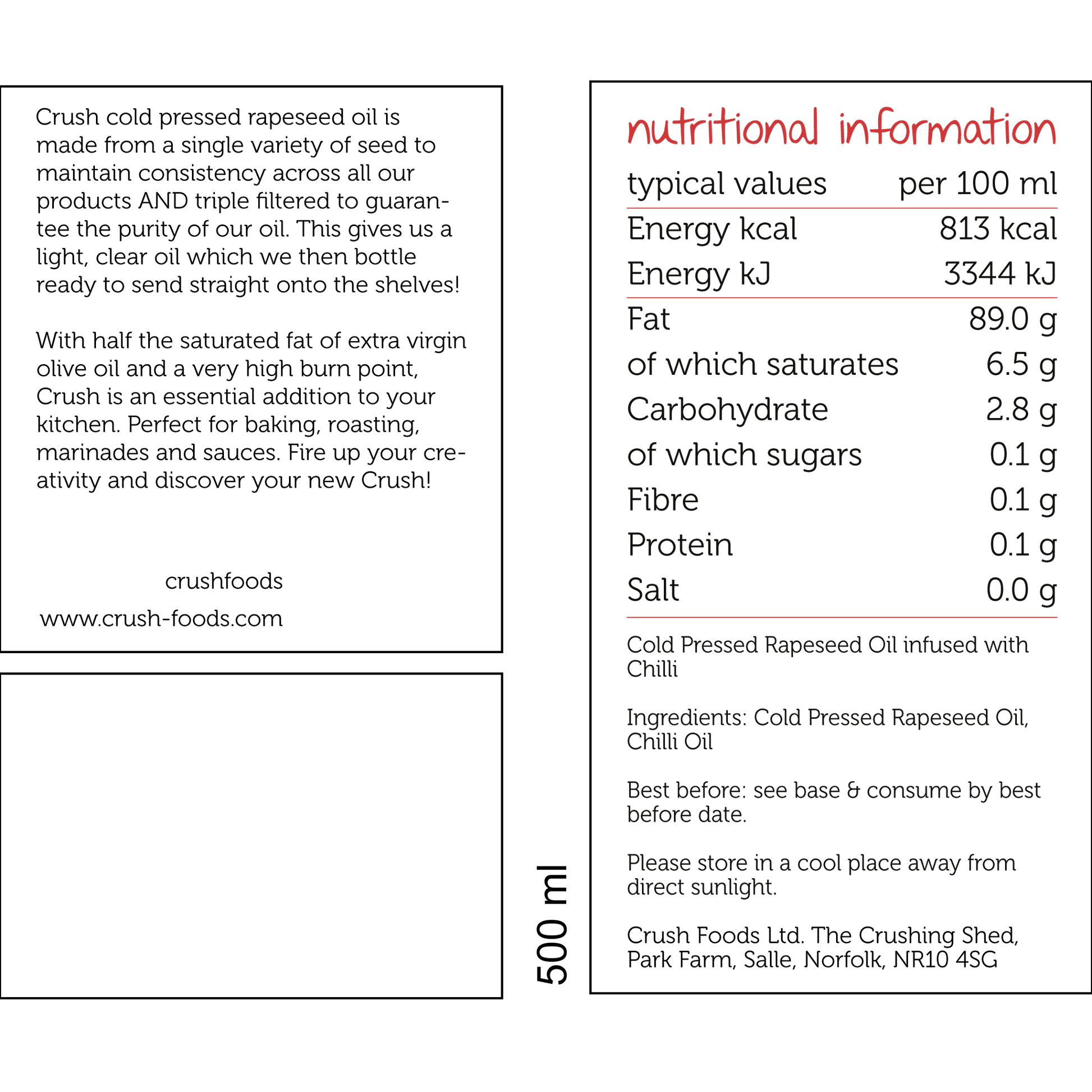 Smoked Chilli Oil - Crush Cold Pressed Rapeseed Oil, Chilli, Smoked Oil