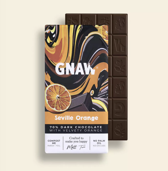 Gnaw 70% Dark Seville Orange Choc Bar - 80g