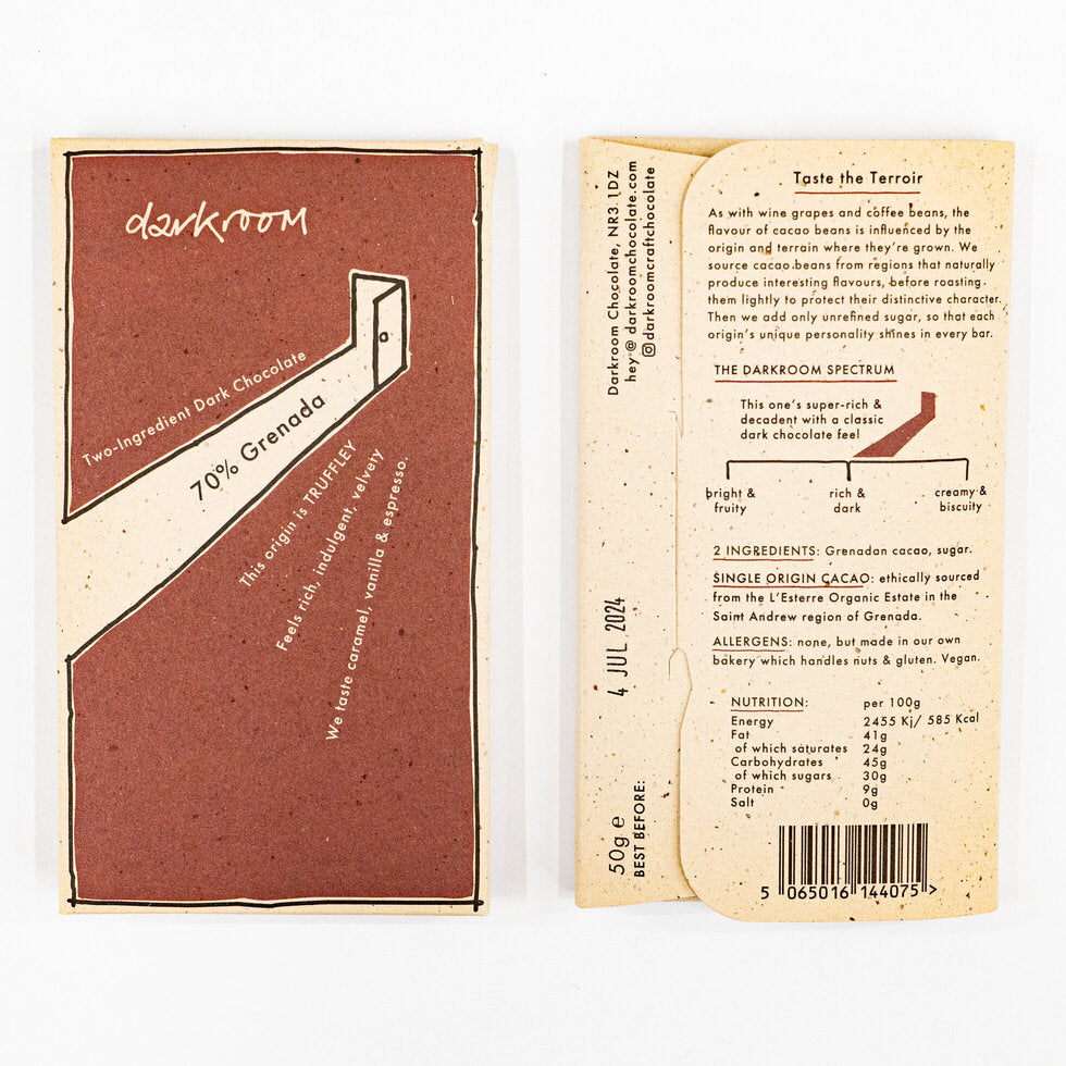 Grenada 70% Dark Craft Chocolate, 50g - Darkroom VEGAN Chocolate