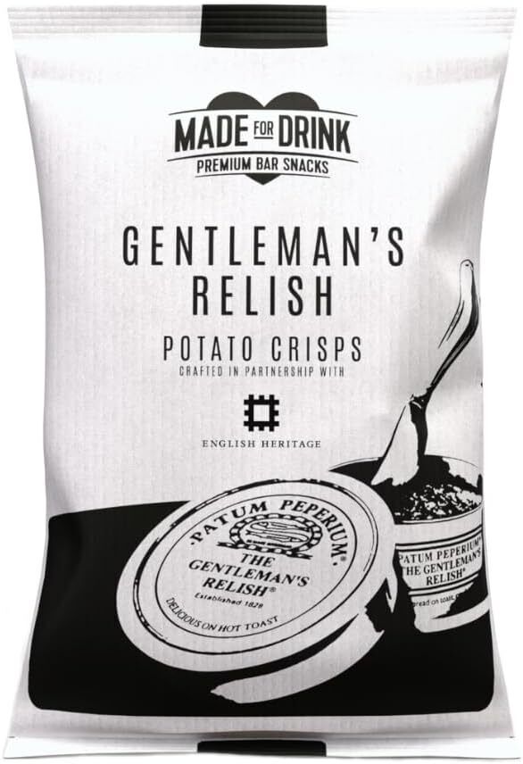 Introducing The Gentleman's Relish Crisps, an ode to a flavour from England's historical gastronomical chronicles. Indulge in the nuanced umami-packed taste of this traditional anchovy-based spread, reinvented in the most contemporary and inclusive way - 100% vegan.