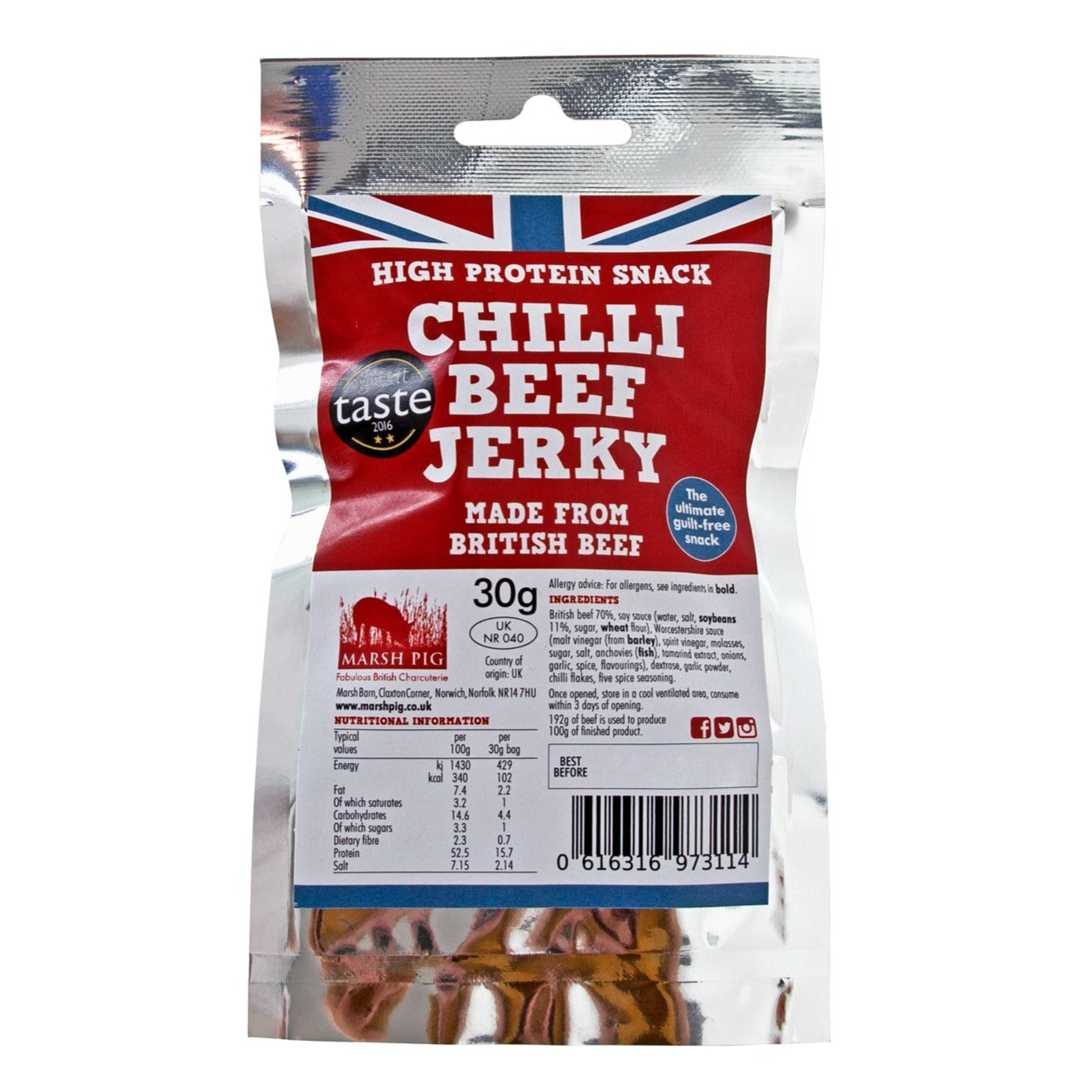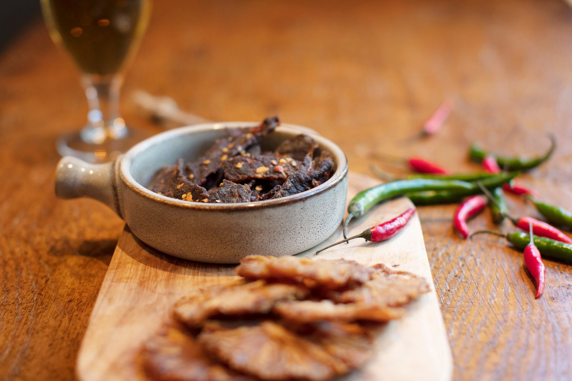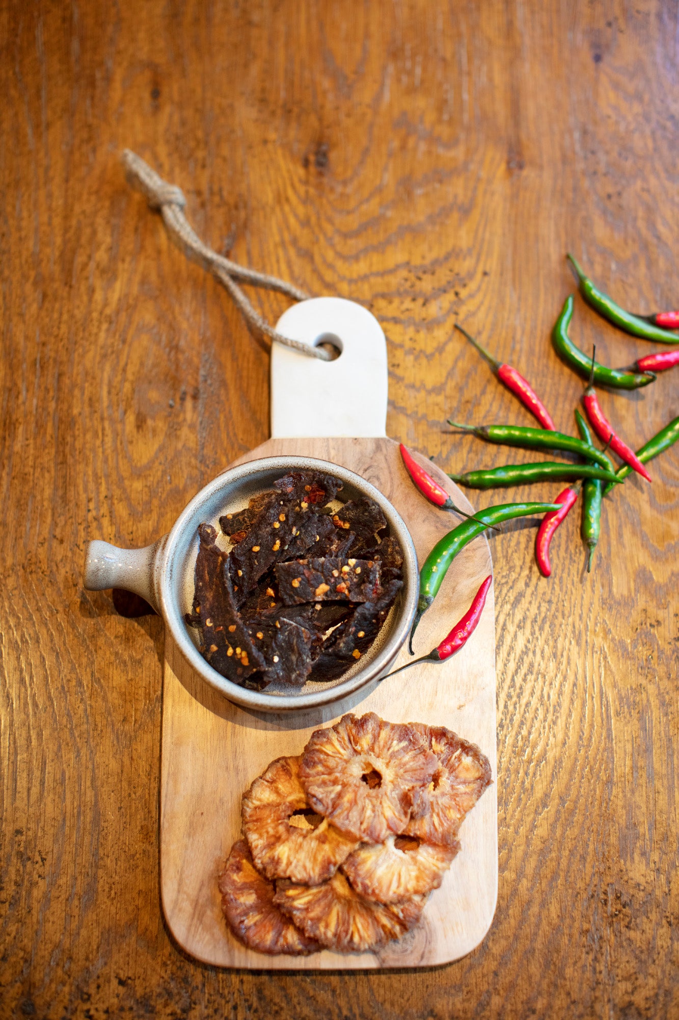 Made with lots of spice and a chilli kick, Marsh Pig’s rare breed beef jerky is the perfect go-to snack.