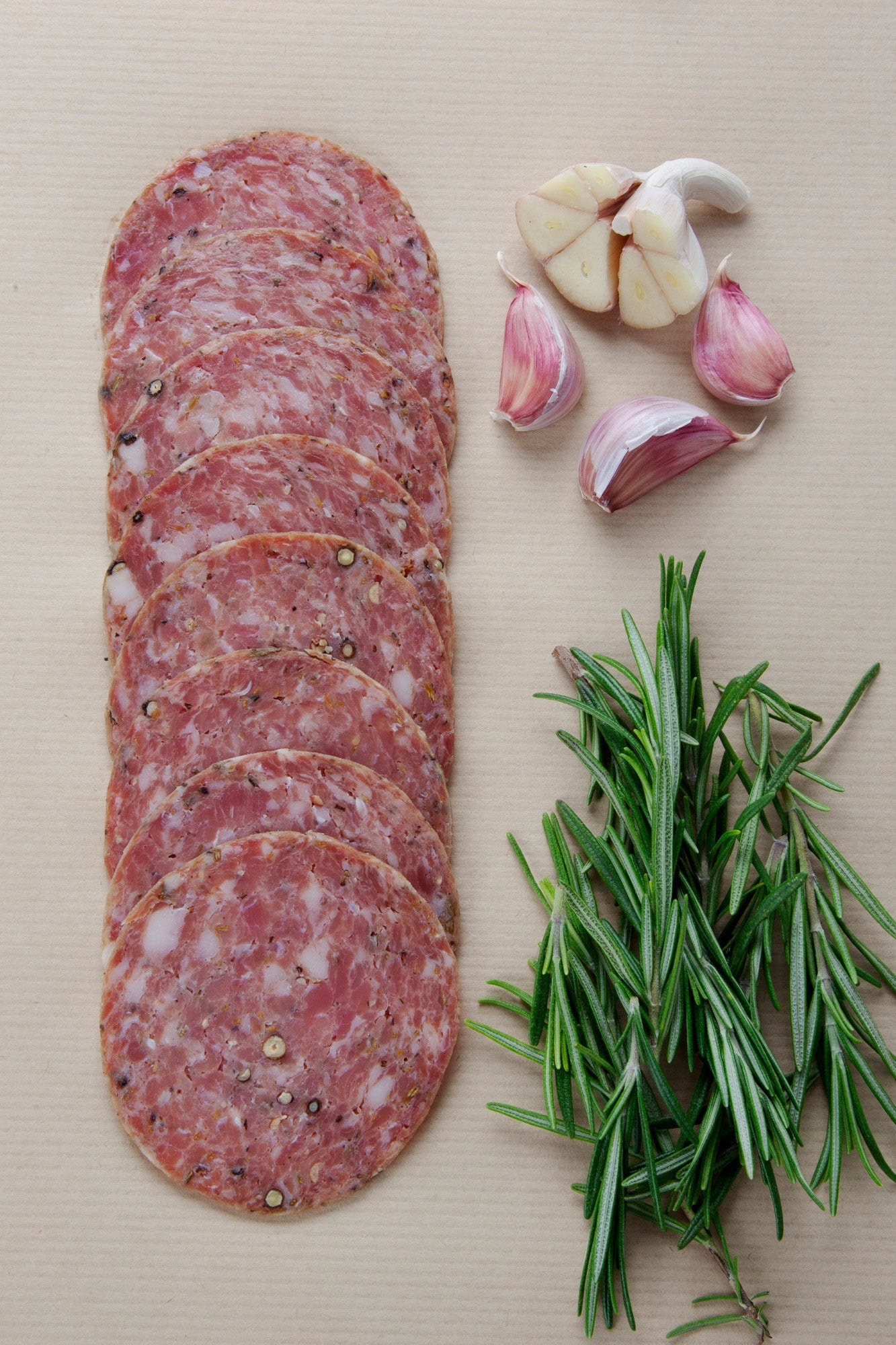 Brace yourselves. This salami is the perfect combination of aromatic rosemary and punchy garlic. Serve with some crusty bread and a glass of something red.