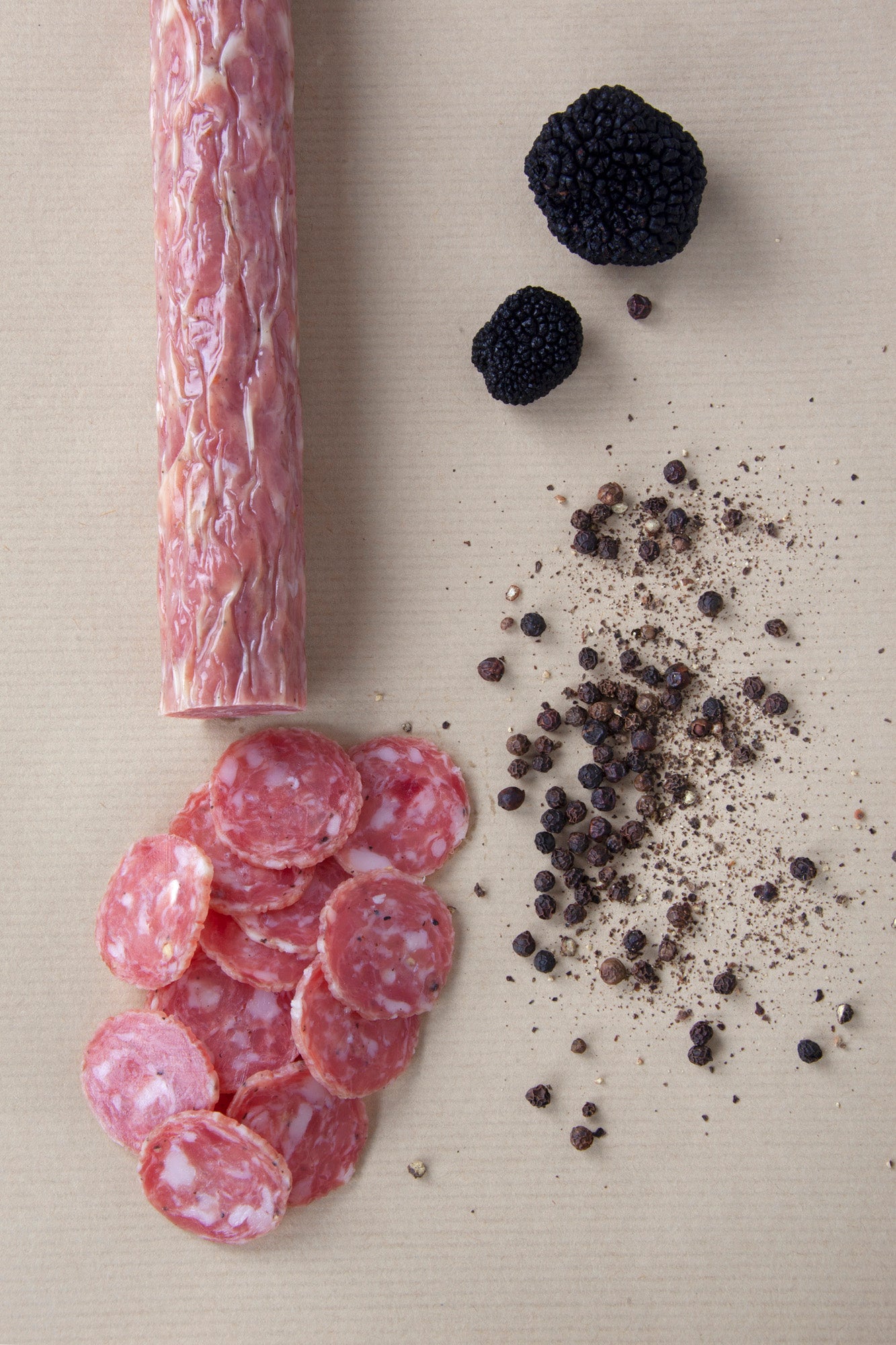 Ingredients: Free range pork 96.2%, salt, black pepper, dextrose, truffle oil, preservative (sodium nitrite)