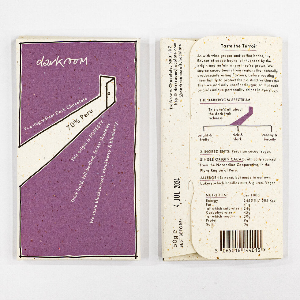 Peru 70% Dark Craft Chocolate, 50g - Darkroom VEGAN Chocolate