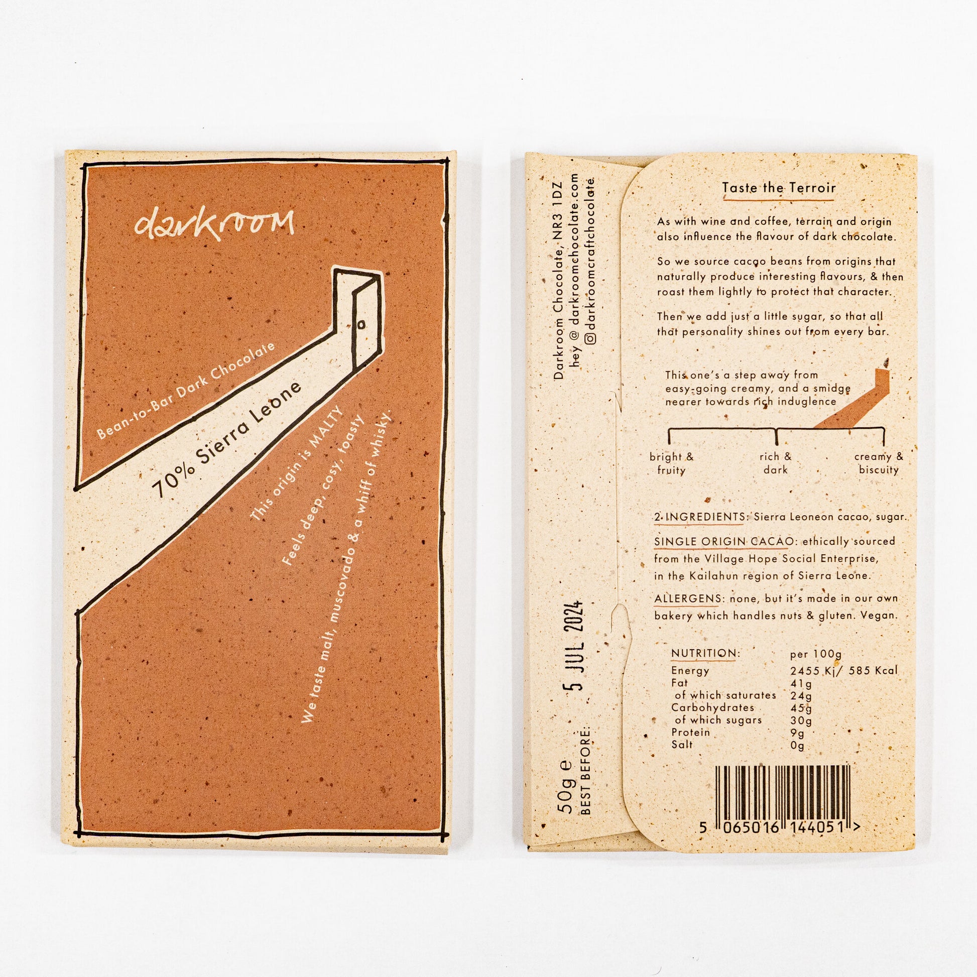 Sierra Leone 70% Dark Craft Chocolate, 50g - Darkroom VEGAN Chocolate